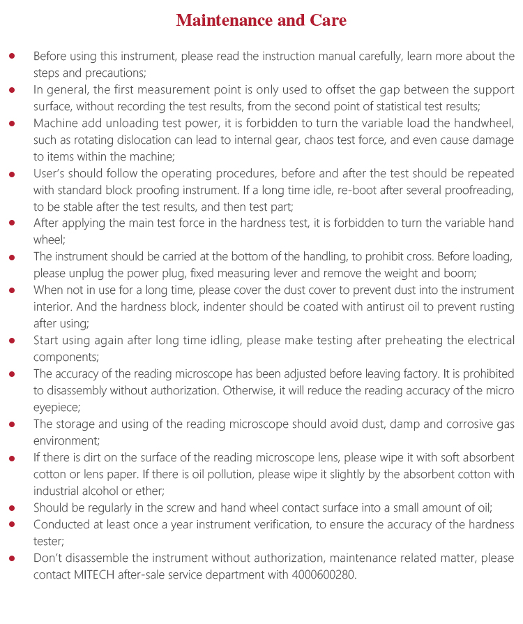 l Don’t disassemble the instrument without authorization, maintenance related matter, please contact MITECH after-sale service department with 4000600280.