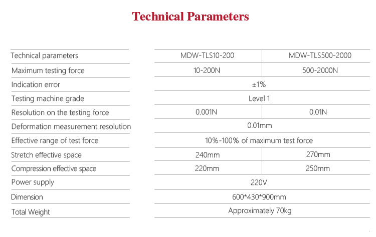 | Maximum testing force | 500-2000N |