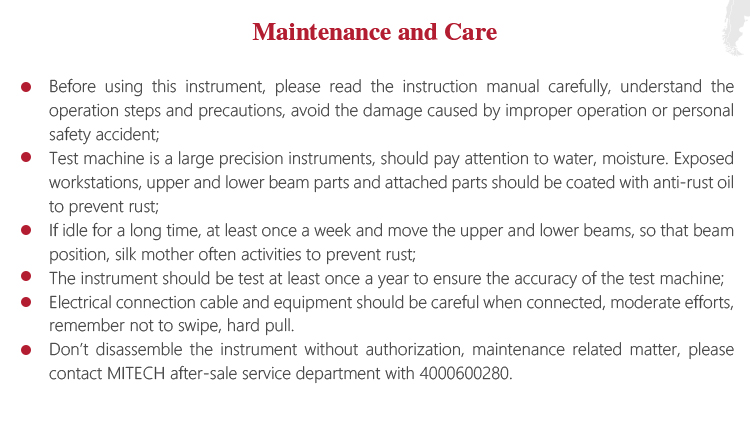 l Don’t disassemble the instrument without authorization, maintenance related matter, please contact MITECH after-sale