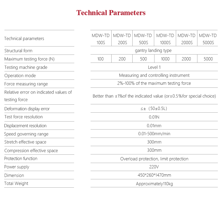 Mitech MDW-TDS digital series of Single - Arm Spring Tension/Compression Testing Machine, through the single-chip automatic control motor driving screw movement, for a variety of coil springs for tensile and compression test. it use of built-in controller, AC servo motor, automatic control and data acquisition system, stable performance, strong structure, high reliability, simple operation, high degree of automation. Widely used in spring manufacturing, low-voltage electrical appliances, power machinery, institutions of higher learning and scientific research institutes and other fields.It is the necessary professional precision testing equipment for improving production efficiency and saving production costs.