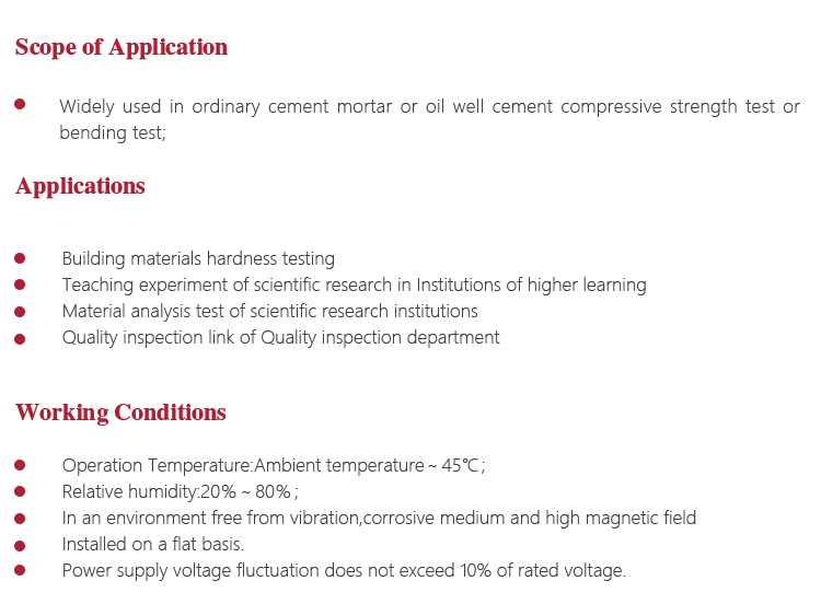 Instrument Featuresl Widely used in ordinary cement mortar or oil well cement compressive strength test or bending test;