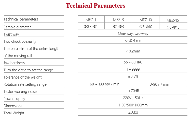 Mitech MEZ Series Wire Torsion Testing Machine, through the single-chip computer control testing machine speed, for metal wire unidirectional or bidirectional torsion test, its performance is stable, simple operation, strong structure, simple structure, high work efficiency. Widely used in the determination of metal wire to withstand plastic deformation capacity and display of wire surface and internal defects,it is to improve production efficiency and save production costs essential professional precision testing equipment.