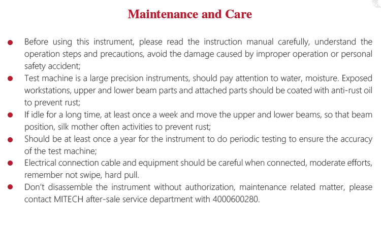 l Don’t disassemble the instrument without authorization, maintenance related matter, please contact MITECH after-sale service department with 4000600280.