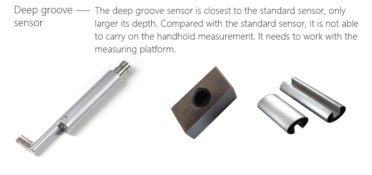 | The deep groove sensor of Mitech portable surface roughness tester MR200, with totally length of 80.5mm, main body length of 46mm, guide-head bearer length of 23mm, main body diameter of Φ10mm, core-insert sleeve diameter of Φ7mm, guide-head height of 14.2mm, It is the optional configuration of the surface roughness tester, mainly used for measuring the roughness for various surfaces like plane, inclined plane, cone, inner hold and grooves. The deep groove sensor is closest to the standard sensor, only larger its depth. Compared with the standard sensor, it is not able to carry on the handheld measurement. It needs to work with the measuring platform, mainly for measuring the roughness of the workpeice with the depth which the standard sensor can’t reach. | |