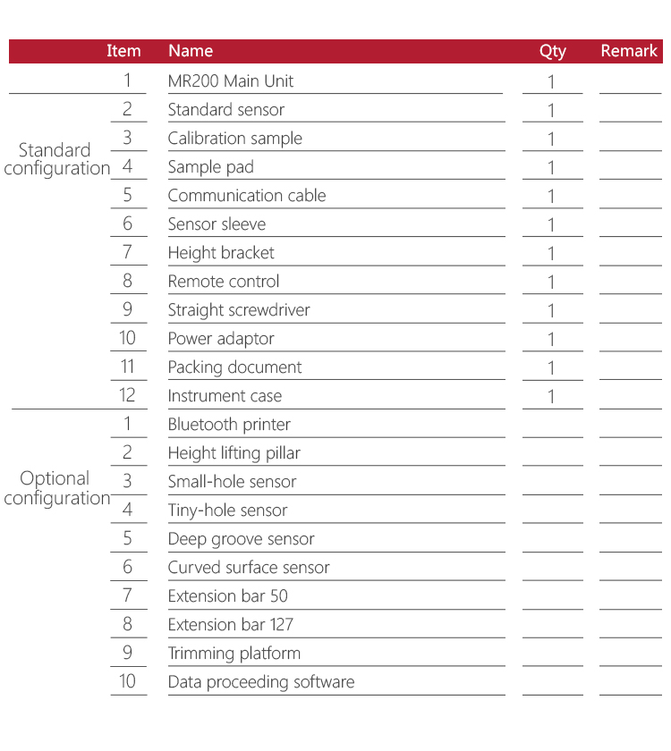 Full accessories, options for curve surface probe, deep groove probe, small hole probe, tiny hole probe, tooth surface probe, small pillar, height adjust platform, extension bar, lateral transfer rod etc.
