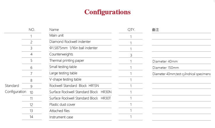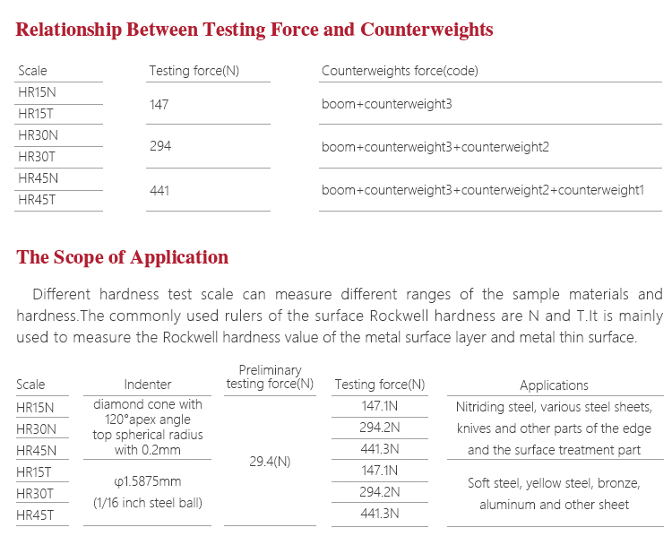 | Rockwell scale | HR15N 、HR30N 、HR45N 、HR15T 、HR30T 、HR45T |