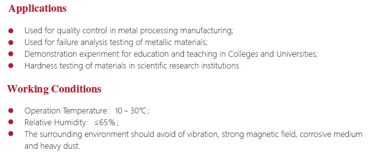 l Option for various specifications of the indenter, support many types of Rockwell hardness scales testing ;