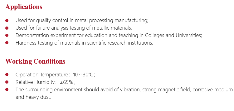 Instrument Featuresl Widely used for high-precision hardness testing for parts with a variety of metal and non-metallic materials;