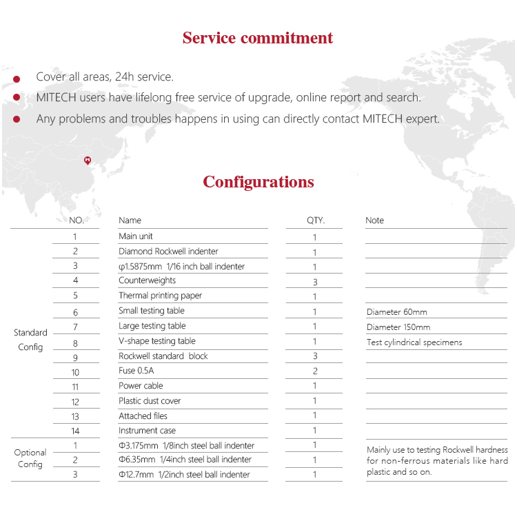 | Indenter specification | Diamond cone Rockwell indenter,Φ1.5875mm steel ball indenter |