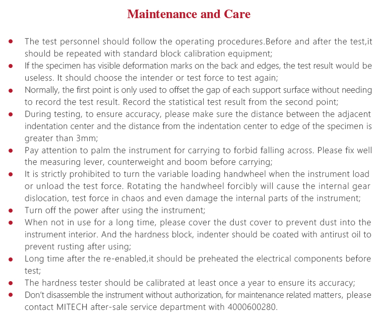 hardness block, indenter should be coated with antirust oil to prevent rusting after using;