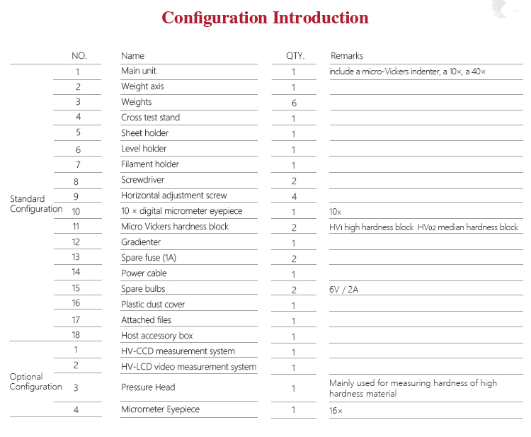 | Test force | 10gf (0.098N)、25gf (0.245N)、50gf (0.49N)、100gf (0.98N)、 200gf (1.96N)、300gf (2.94N)、500gf (4.9N)、1k |