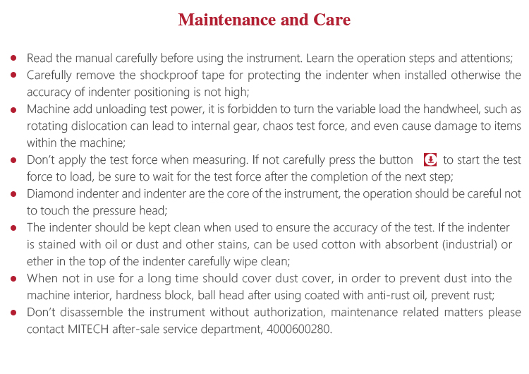 Diamond indenter and indenter are the core of the instrument, the operation should be careful not to touch the pressure head