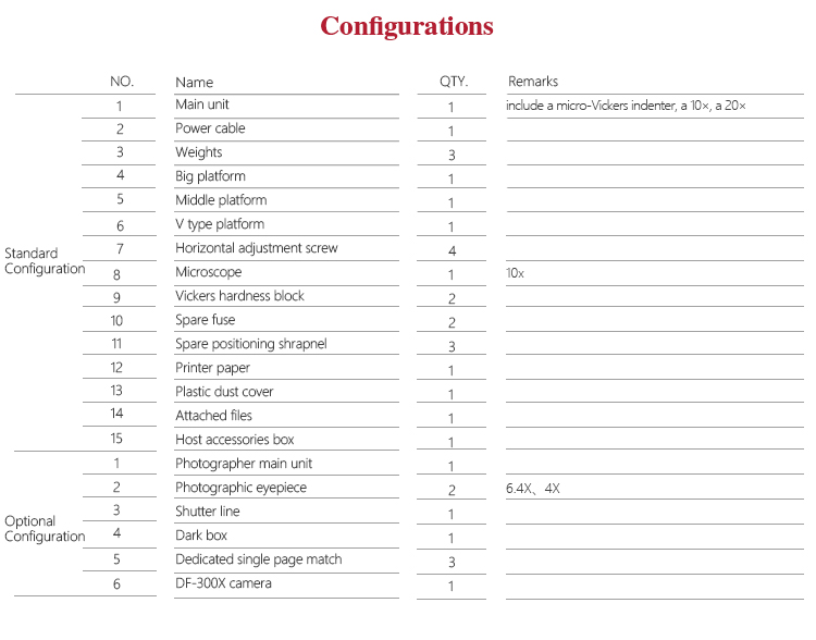l Equipped with a variety of small load Vickers hardness scale spare;