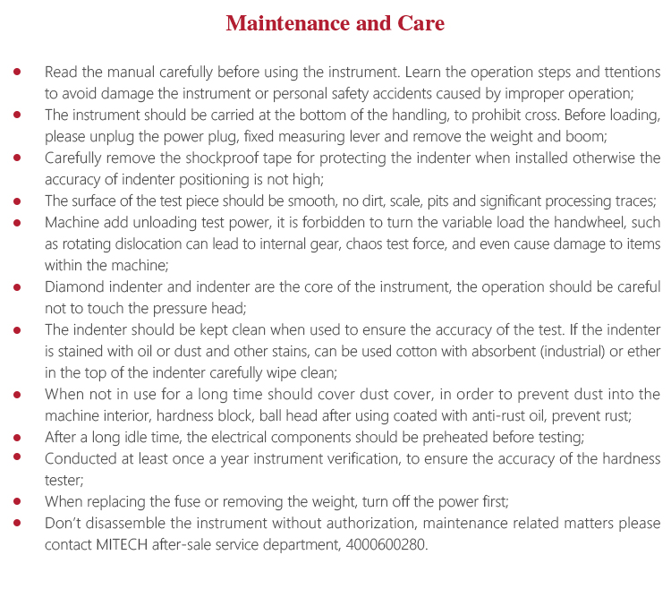 l The indenter should be kept clean when used to ensure the accuracy of the test. If the indenter is stained with oil or dust