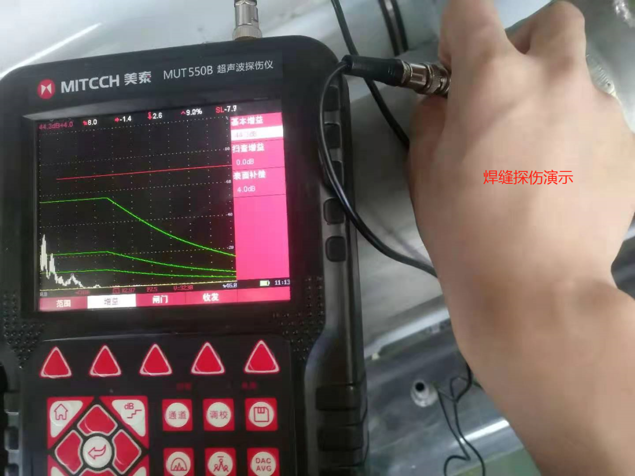 美泰工程師抵達現場詳細了解了客戶欲檢測的工件情況及現場特征,開始開展有針對性的培訓服務,首先從超聲波探傷儀的原理著手進行超聲波探傷的理論知識講解,解決客戶的疑問,為客戶提供理論實操結合的培訓,從而能清晰的去檢測判斷缺陷。