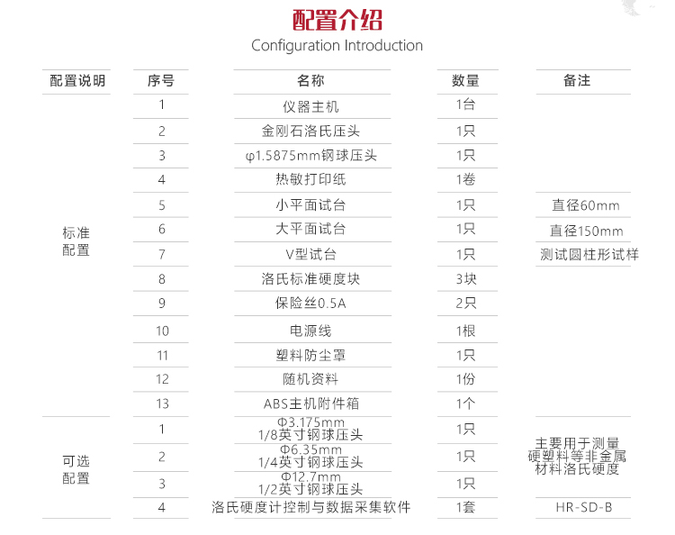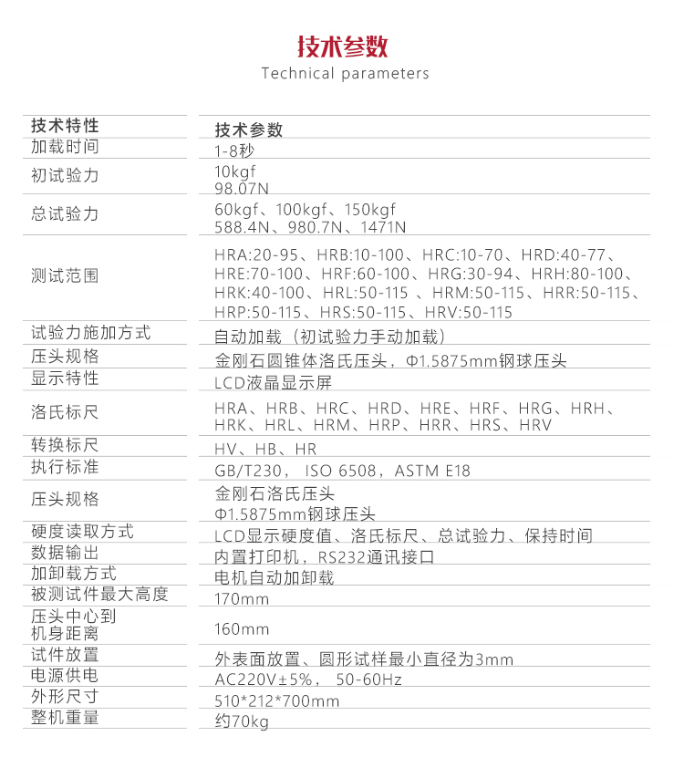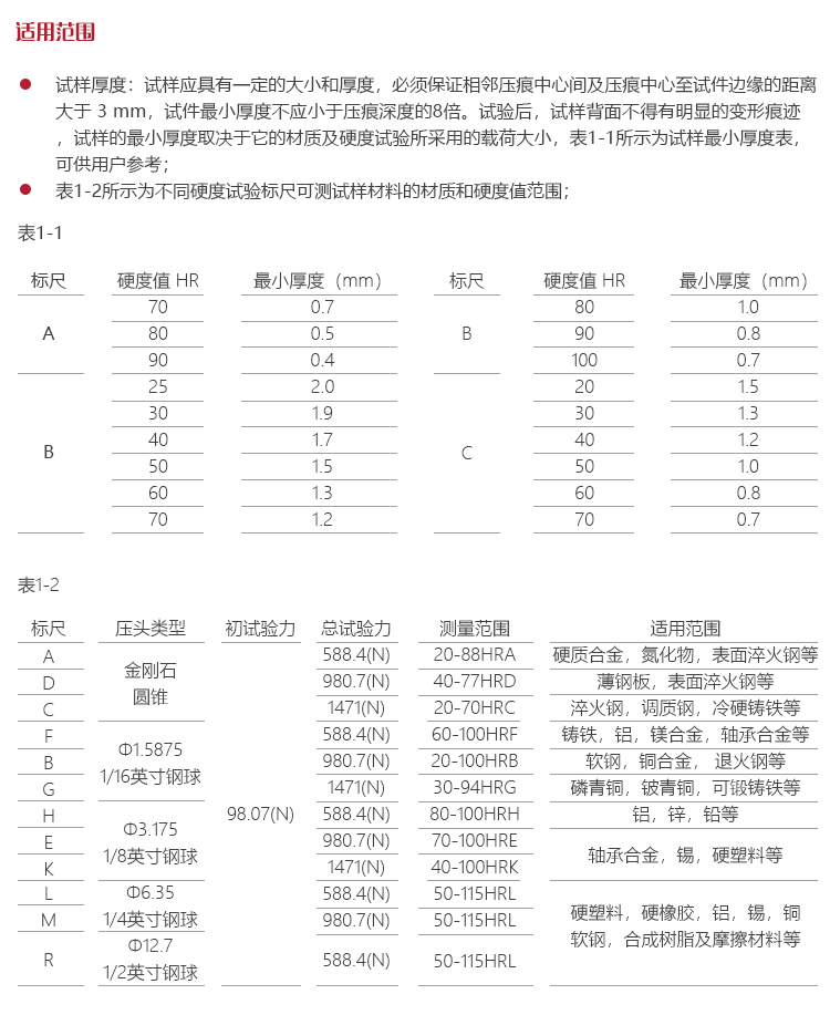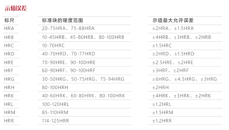 | 測試范圍 | HRA:20-95、HRB:10-100、HRC:10-70、HRD:40-77、HRE:70-100、HRF:60-100、HRG:30-94、HRH:80-100、HRK:40-100、HRL:5 |