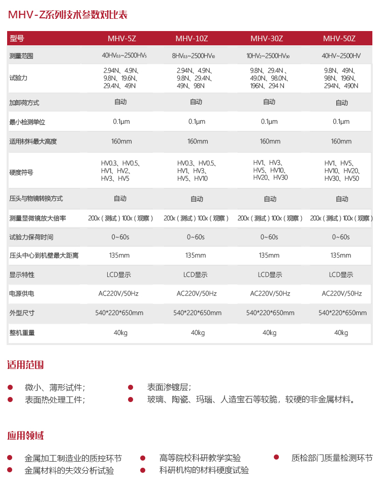 儀器特點廣泛適用于微小試件、薄形試件、熱處理工件等進行表面(滲鍍層)的維氏硬度試驗,可滿足科研機構,精密的加工制造業及質檢部門等材料試驗的需求;