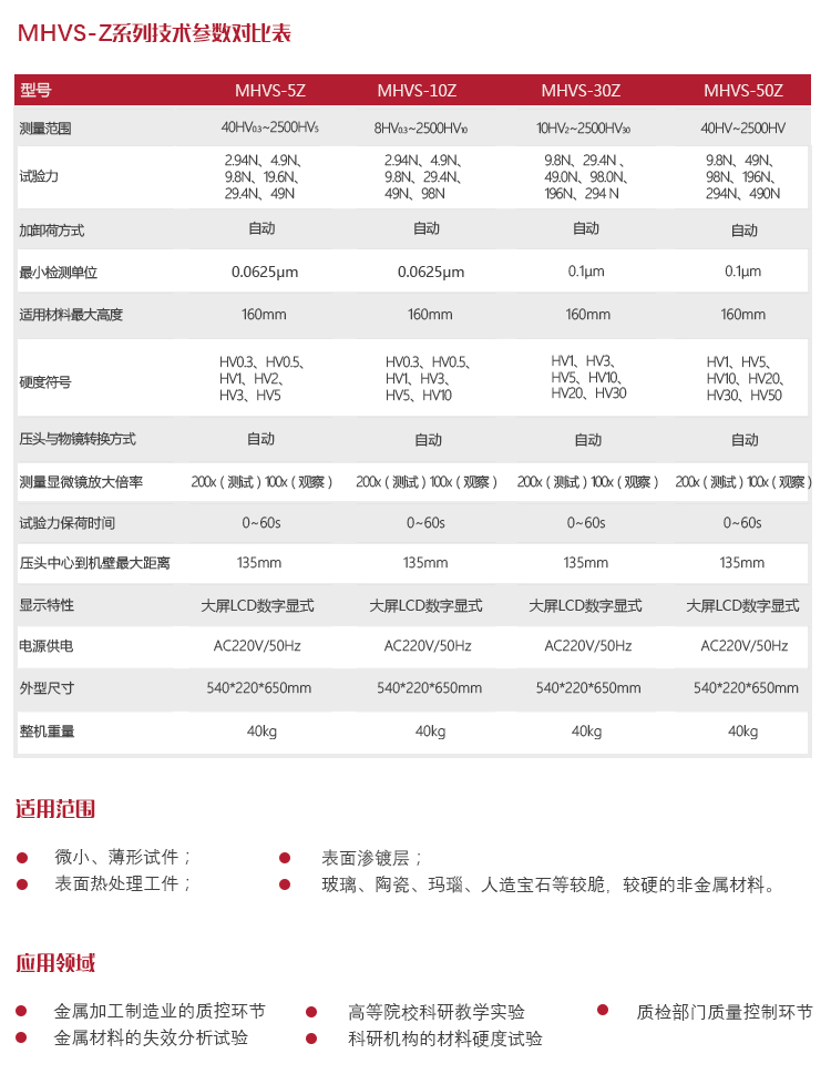 | 試驗力 | 詳見MHVS-Z系列技術(shù)參數(shù)對比表 |