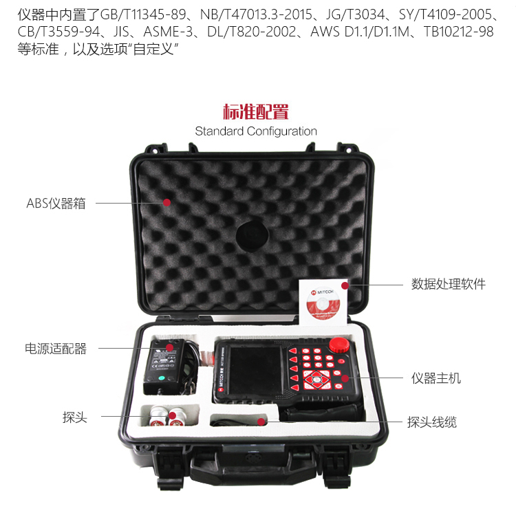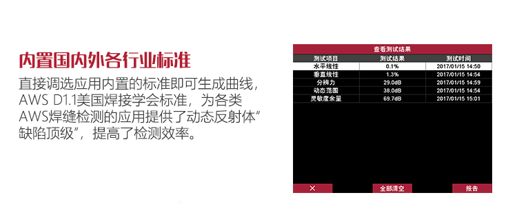 | 探傷標準 | 內置各行業常用探傷標準,直接調用,方便、快捷 |