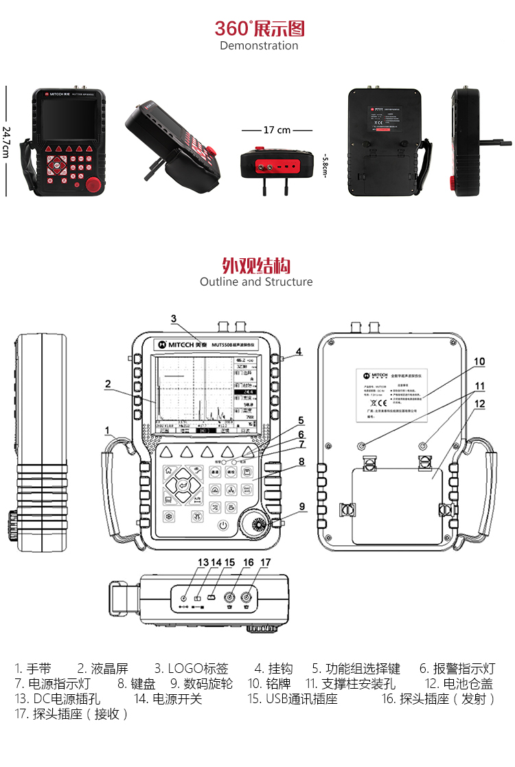 | 美泰超聲波探傷儀主機皮套長27.5cm, 寬17cm,高8cm,用于保護儀器,內置背帶,可根據需要自行調節。 | |