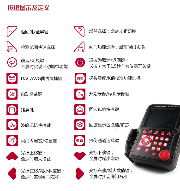| 自動校準 | 探頭零點和探頭角度(K值)自動校準功能;聲速自動測量功能 |