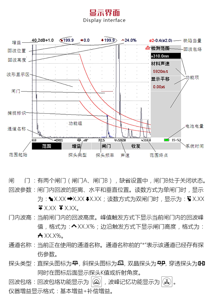 | 定位 | 實時顯示缺陷水平、深度(垂直)、聲程位置 |
