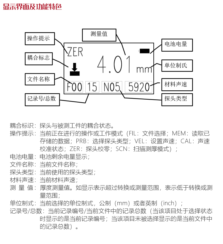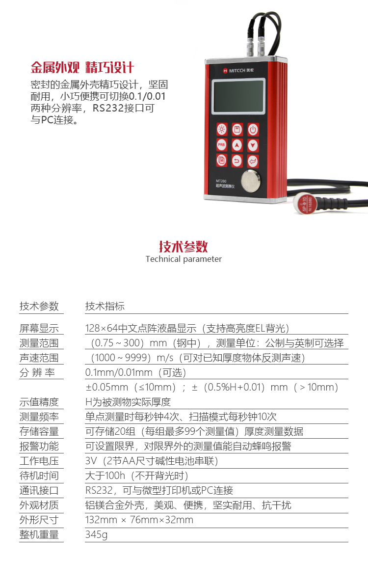 | 測量范圍 | (0.75~300)mm(鋼中),公制與英制可選擇 |