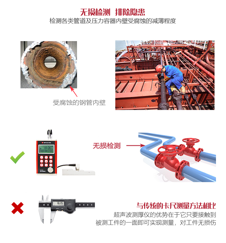 功能用途適合測量金屬(如鋼、鑄鐵、鋁、銅等)、塑料、陶瓷、玻璃、玻璃纖維及其他任何超聲波的良導體的厚度