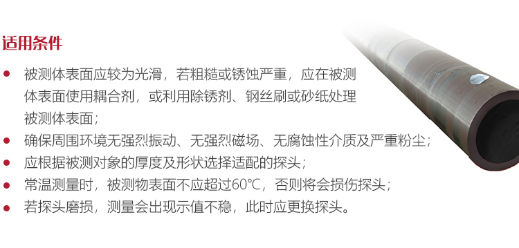 若被測體表面有大量耦合劑時,當探頭離開被測體表面時,耦合劑會引起誤測。因此測量結束時,應迅速將探頭移開被測體表面。