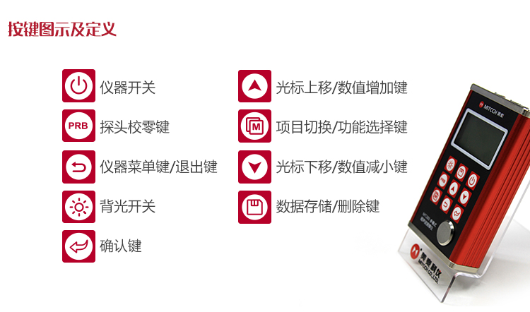 探頭表面為丙烯樹脂,對粗糙表面的重劃很敏感,因此在使用中應輕按;測粗糙表面時,盡量減少探頭在工作表面的劃動。