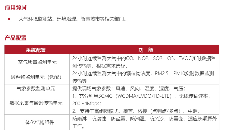 功能用途大氣環境監測站、環境治理、智慧城市等相關部門。