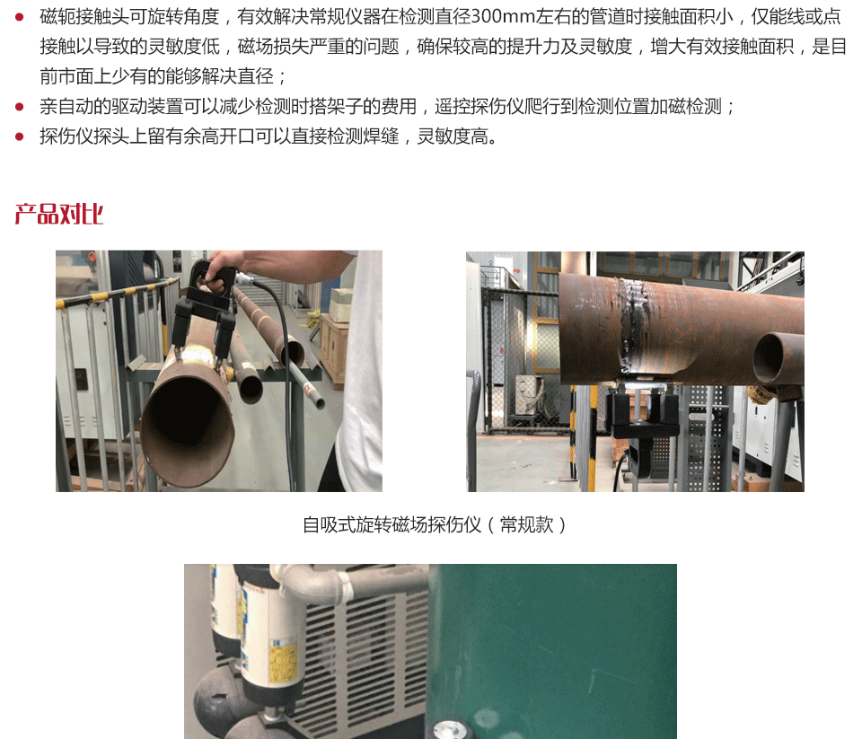 ? 自動(dòng)的驅(qū)動(dòng)裝置可以減少檢測(cè)時(shí)搭架子的費(fèi)用,遙控探傷儀爬行到檢測(cè)位置加磁檢測(cè);
