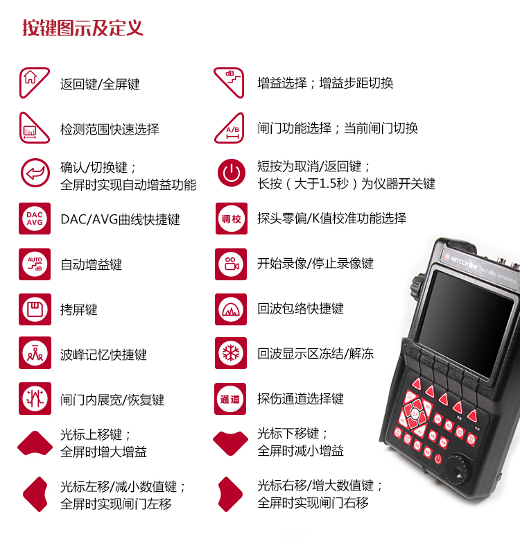 功能用途本儀器能夠廣泛地應(yīng)用在制造業(yè)、鋼鐵冶金業(yè)、金屬加工業(yè)、化工業(yè)等需要缺陷檢測和質(zhì)量控制的領(lǐng)域,也廣泛應(yīng)用于航空航天、鐵路交通、鍋爐壓力容器等領(lǐng)域的在役安全檢查與壽命評估。