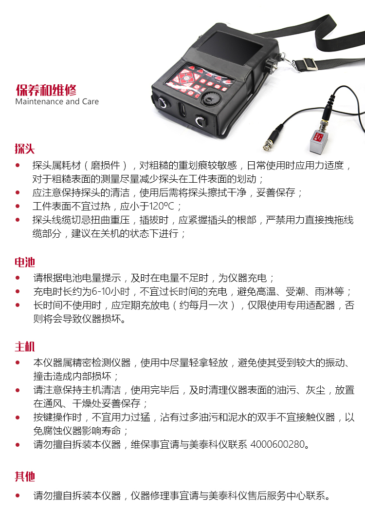 | 美泰超聲波探傷儀附有專用的隨機(jī)裝箱資料。包括產(chǎn)品合格證、保修卡、產(chǎn)品說明書、裝箱清單。隨機(jī)資料采用專用的銅版紙印制,說明書圖文設(shè)計(jì),美觀、易懂、便于長久保存。注:美泰品牌系列產(chǎn)品的隨機(jī)資料均可登陸m.meijiausa.com下載電子版。 | |