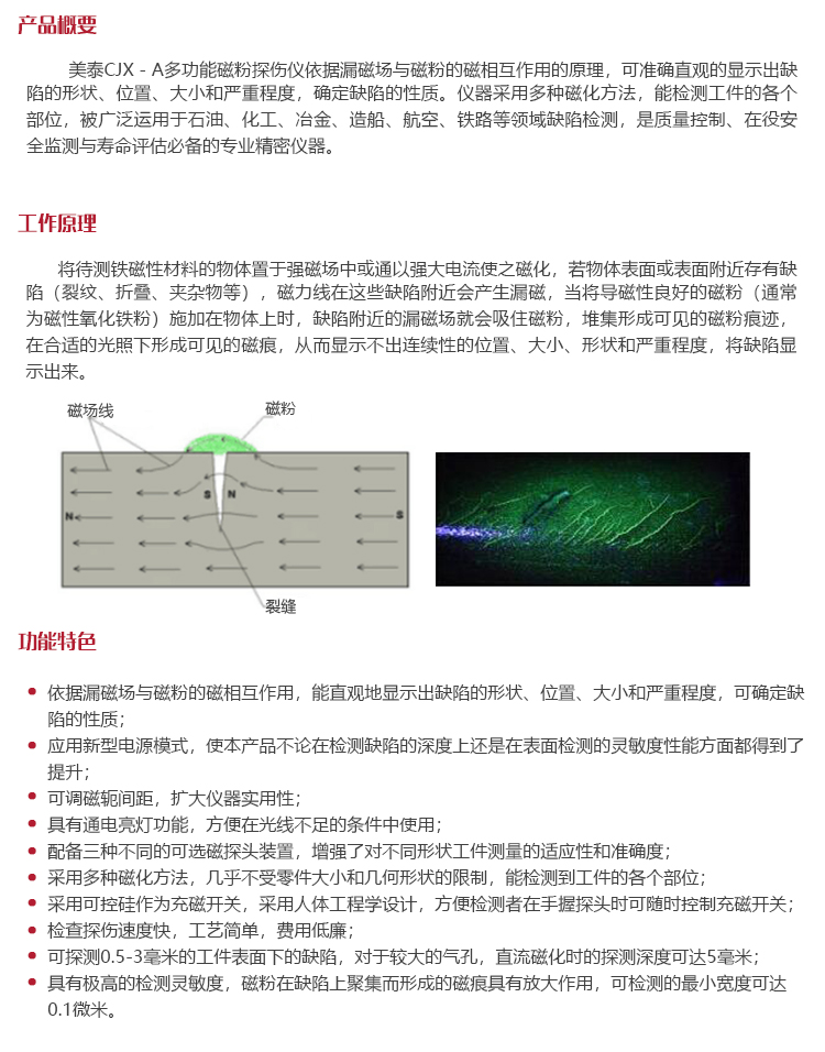 ?應用新型電源模式,使本產品不論在檢測缺陷的深度上還是在表面檢測的靈敏度性能方面都得到了提升;