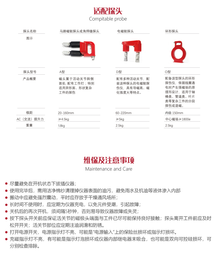 ?按下探頭開關前應保證活關節的磁極頭端面與工件已盡可能保持良好接觸;探頭離開工件前應及時松開開關;活關節部位應定期注油潤滑和防銹;