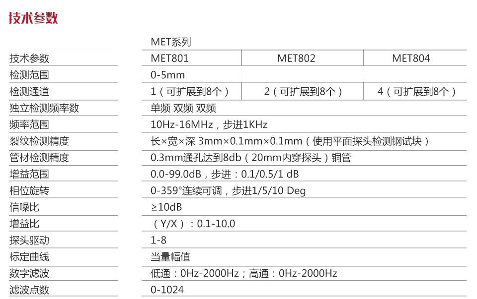 | 技術參數 | MET801 |