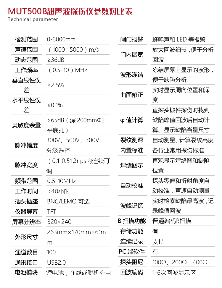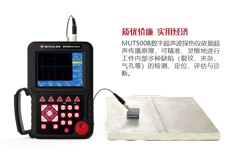 產品概述MUT500B是一款便攜式、全數字式超聲波探傷儀,能夠快速便捷、無損傷、精確地進行工件內部多種缺陷(裂紋、夾雜、氣孔等)的檢測、定位、評估和診斷。既可以用于實驗室,也可以用于工程現場。 0-6000mm量程可滿足制造業、鋼鐵冶金業、金屬加工業、化工業等常規的缺陷需求,低功耗設計配備大容量高性能離子電池模塊可超長待機數月以上;質優價廉,是實用經濟款超聲檢測儀器的首選。