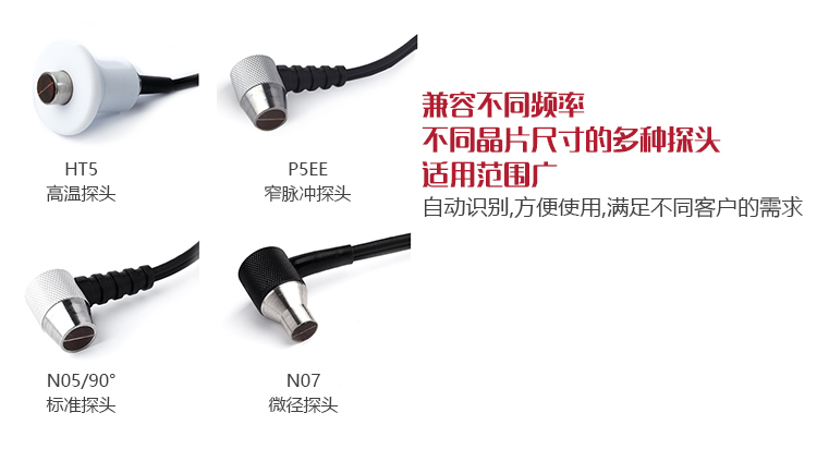 可以兼容多種不同頻率、不同晶片尺寸探頭,自動識別高溫、粗晶、小管徑等不同探頭類型